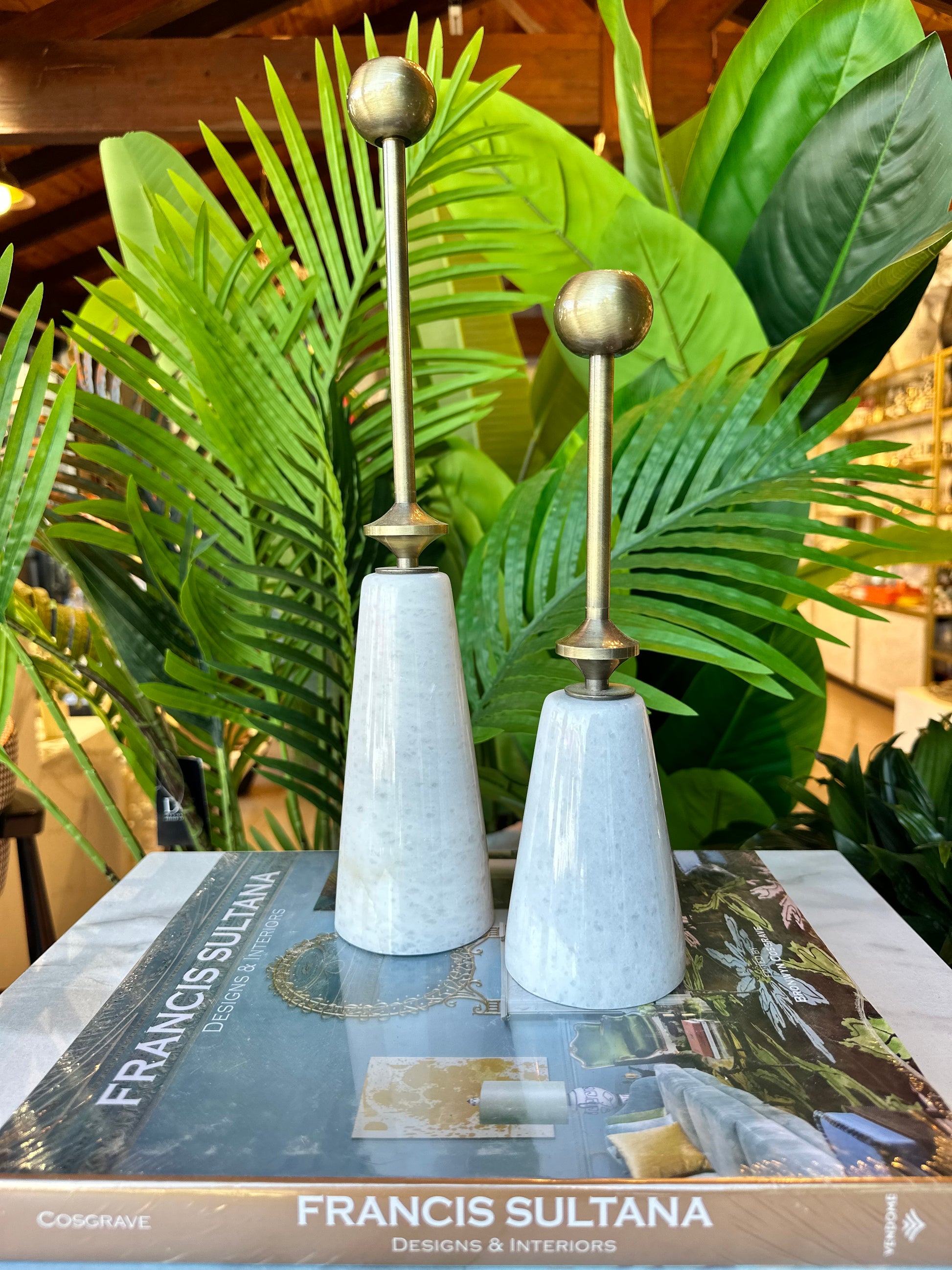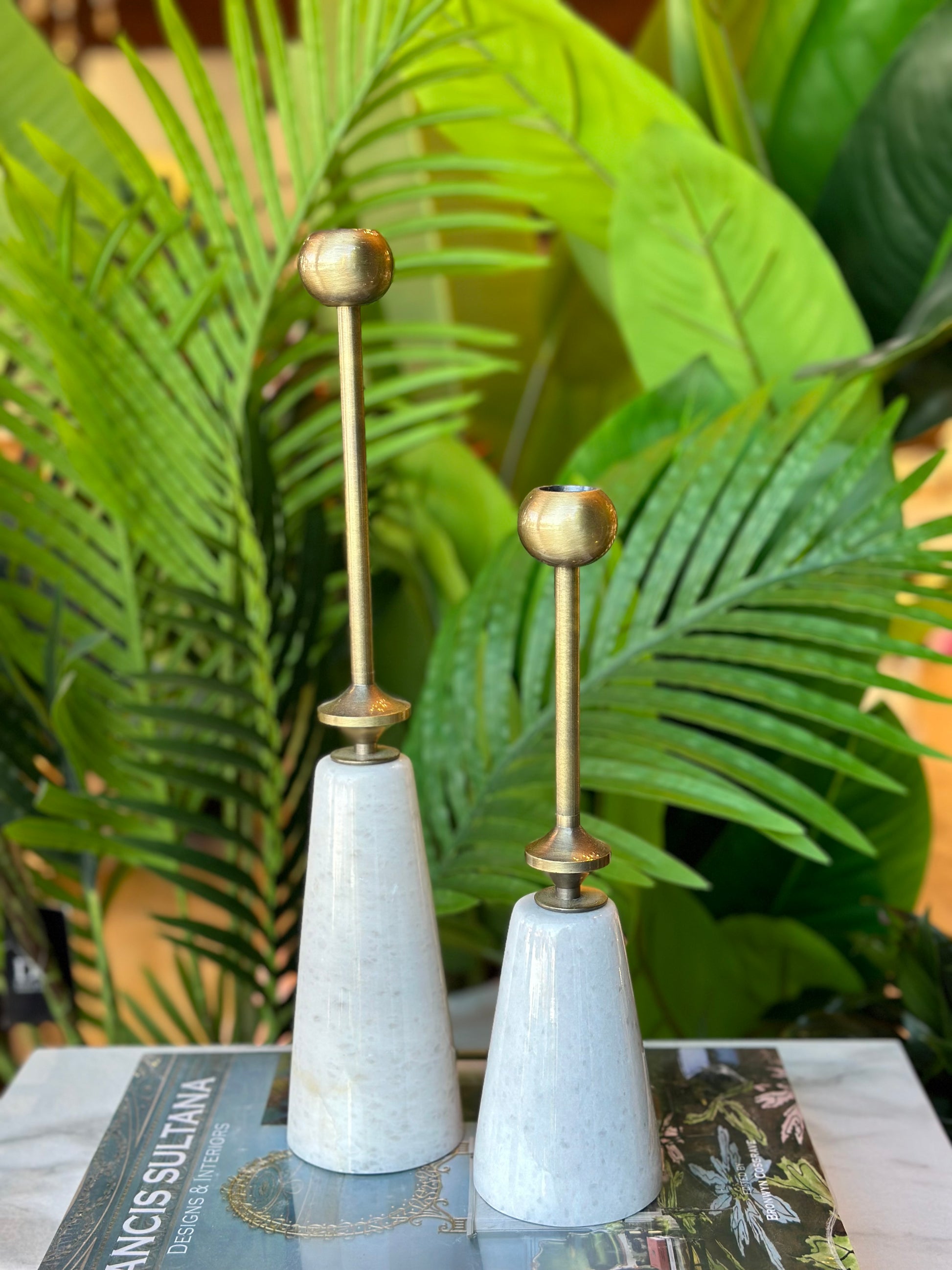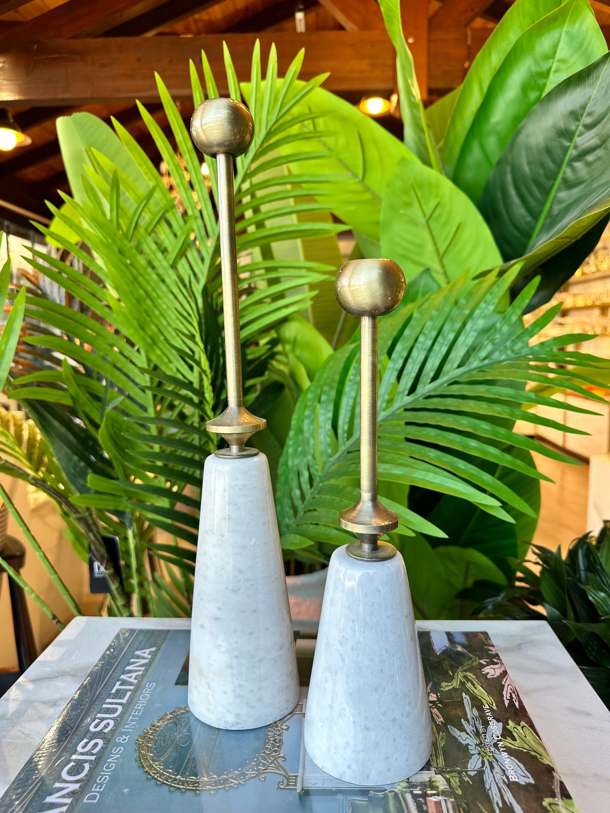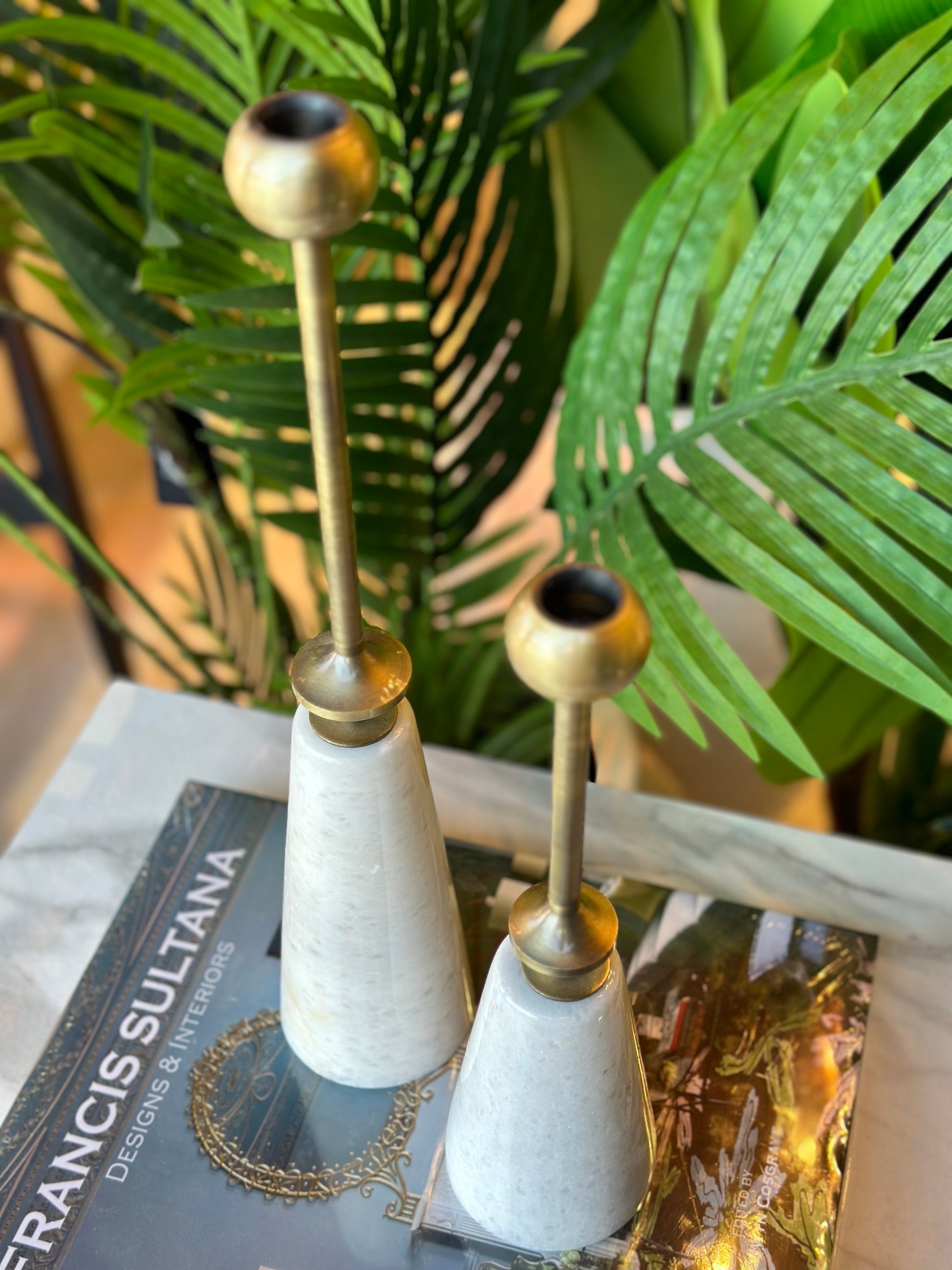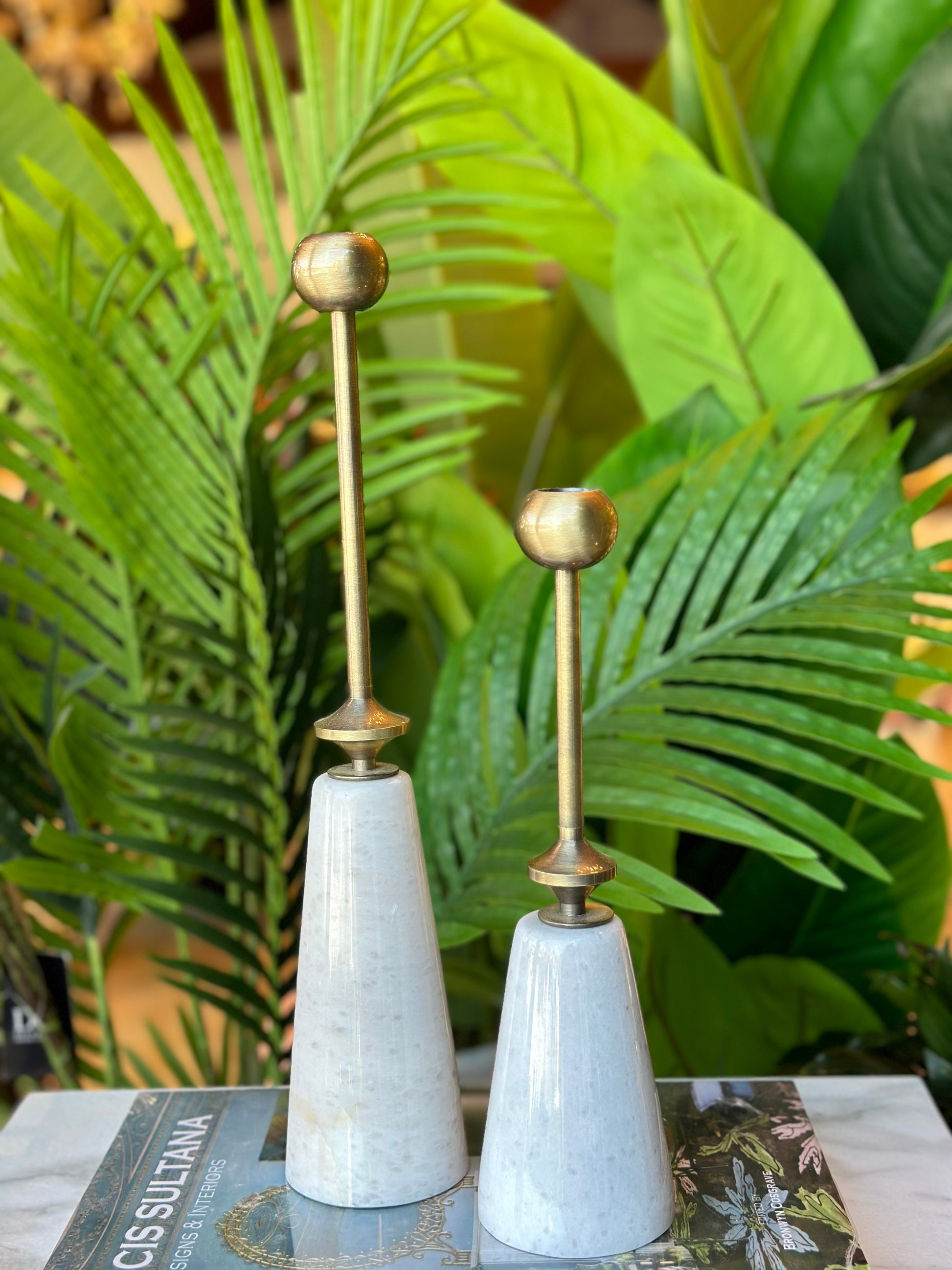 Şıklığı ve zarafeti bir araya getiren 2’li beyaz mermer antik şamdan seti, doğal taşın asaleti ile antik gold detayların birleşiminden oluşur. Sofistike tasarımı sayesinde yaşam alanlarınıza lüks bir atmosfer katar.