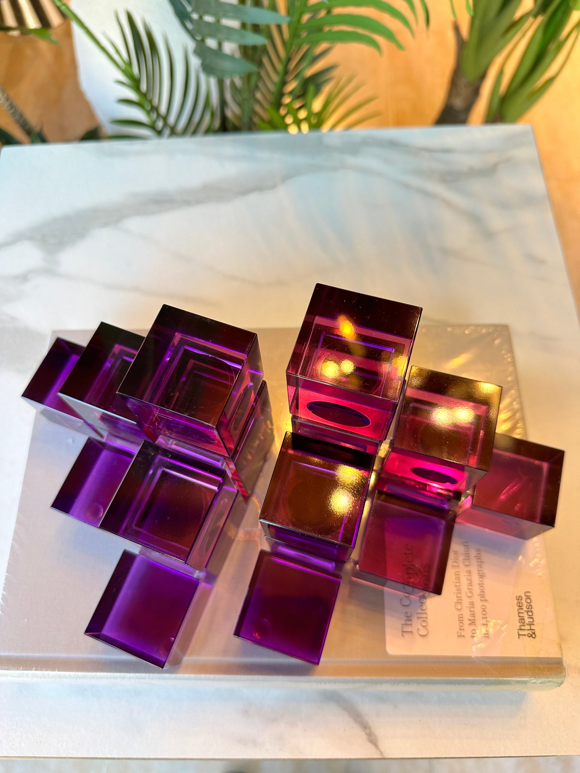 Modern tasarımı ve canlı mor tonlarıyla dikkat çeken 2’li Mor Cam Küp Kitap Tutucu, kitaplığınıza hem işlevsellik hem de estetik bir görünüm katar. Şeffaf cam küp formuyla ışığı yansıtarak farklı açılardan büyüleyici bir parlaklık sunar.