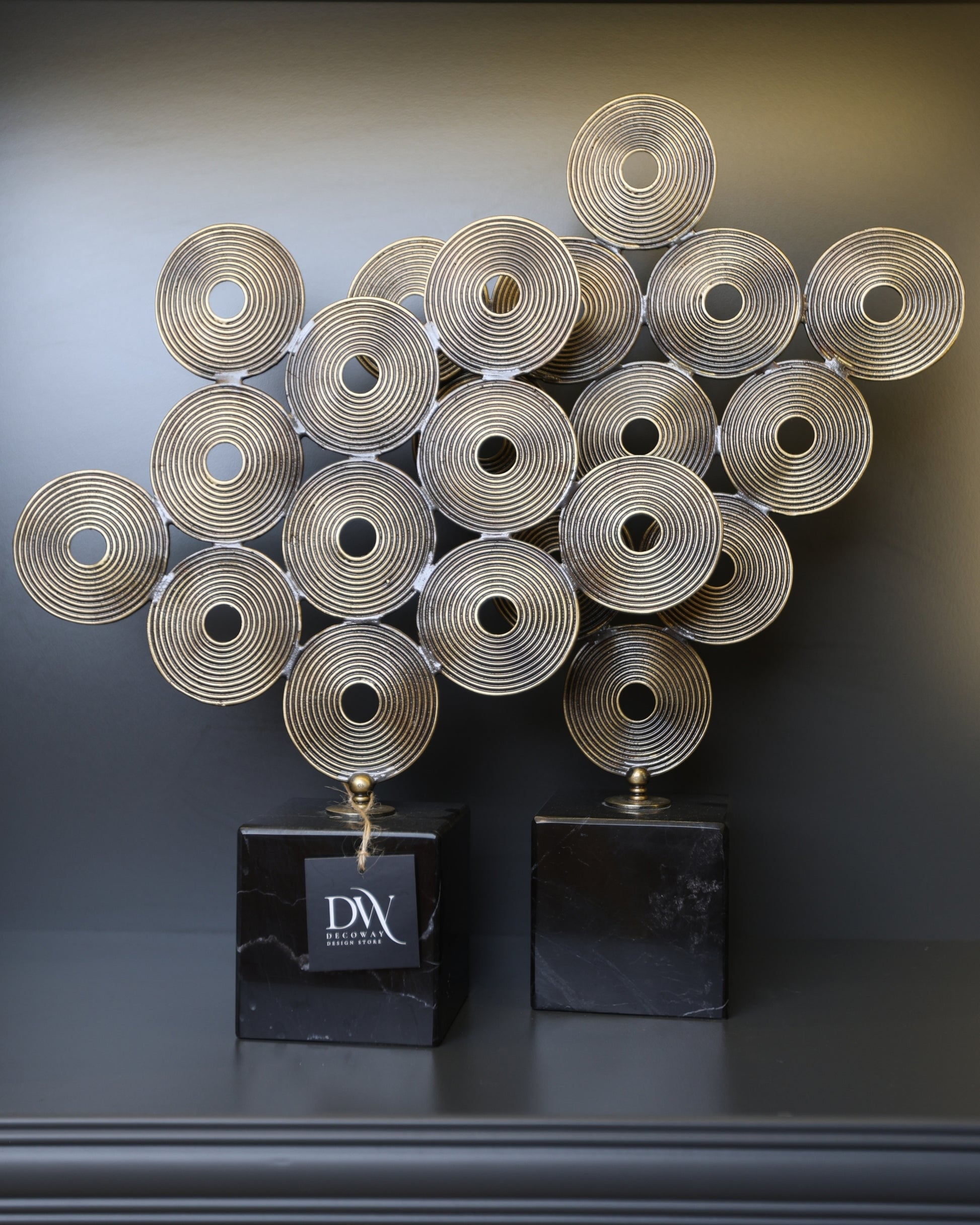Doğadan ilham alan stilize disk çiçek formu, bulunduğu ortama sanatsal bir dokunuş kazandırır. Siyah kaide üzerinde yükselen bronz tonlu yüzeyler ışıkla birlikte yumuşak yansımalar oluşturur. Minimal, modern ve çağdaş dekorasyon stillerinde güçlü bir odak noktasıdır.