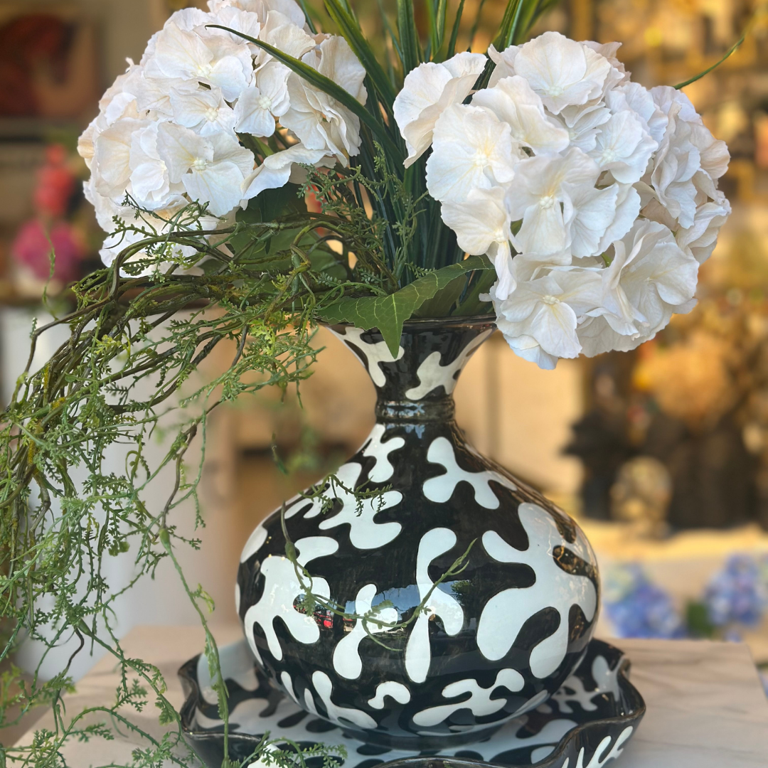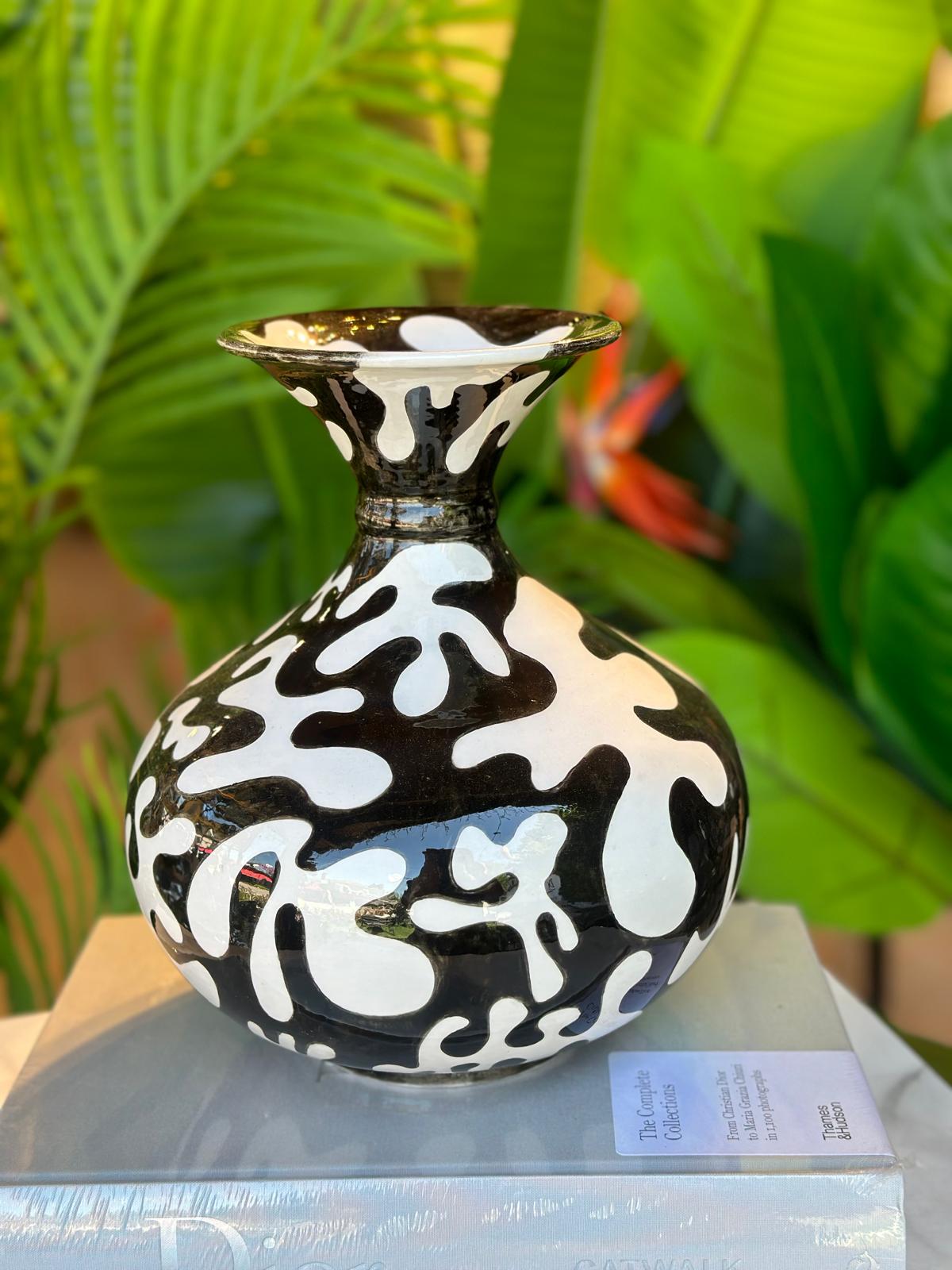 Sanat ruhunu yansıtan bu el yapımı seramik vazo, siyah-beyaz Matisse esintili desenleriyle modern ve zarif bir dekorasyon sunar. Tamamen el işçiliğiyle üretildiği için her parça benzersizdir. Çiçek aranjmanları, kuru dallar veya tek başına dekoratif obje olarak kullanılabilir. Evinizde, ofisinizde ya da özel mekanlarda dikkat çekici bir atmosfer yaratır.