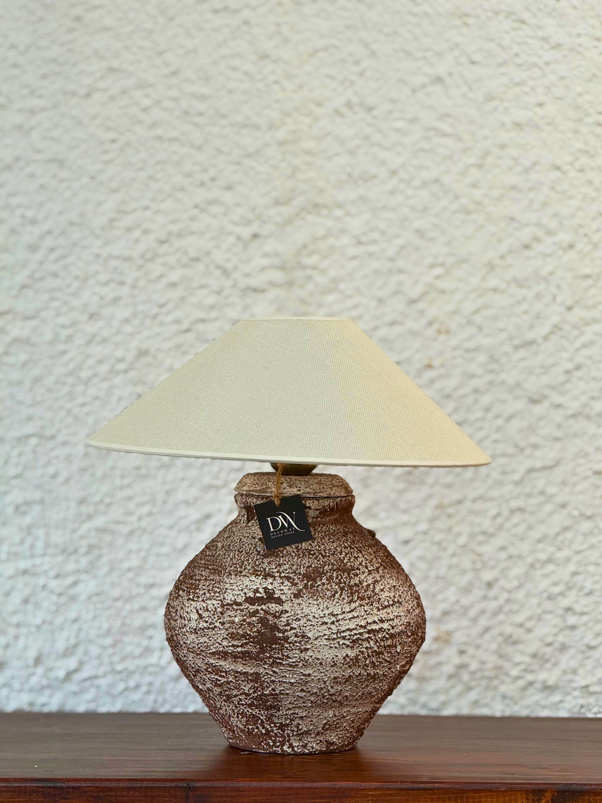 Doğal tonları sevenler için tasarlanan Kahve Dokulu Çömlek Abajur, el yapımı seramik gövdesi ve sıcak kahve tonlarıyla mekânlara rustik bir zarafet kazandırır. Yüzeyindeki dokusal detaylar, ışığın etkisiyle derinlik kazanarak ortama karakterli bir görünüm katar. Açık tonlu keten abajuru, ışığı yumuşatarak doğal bir sıcaklık oluşturur.