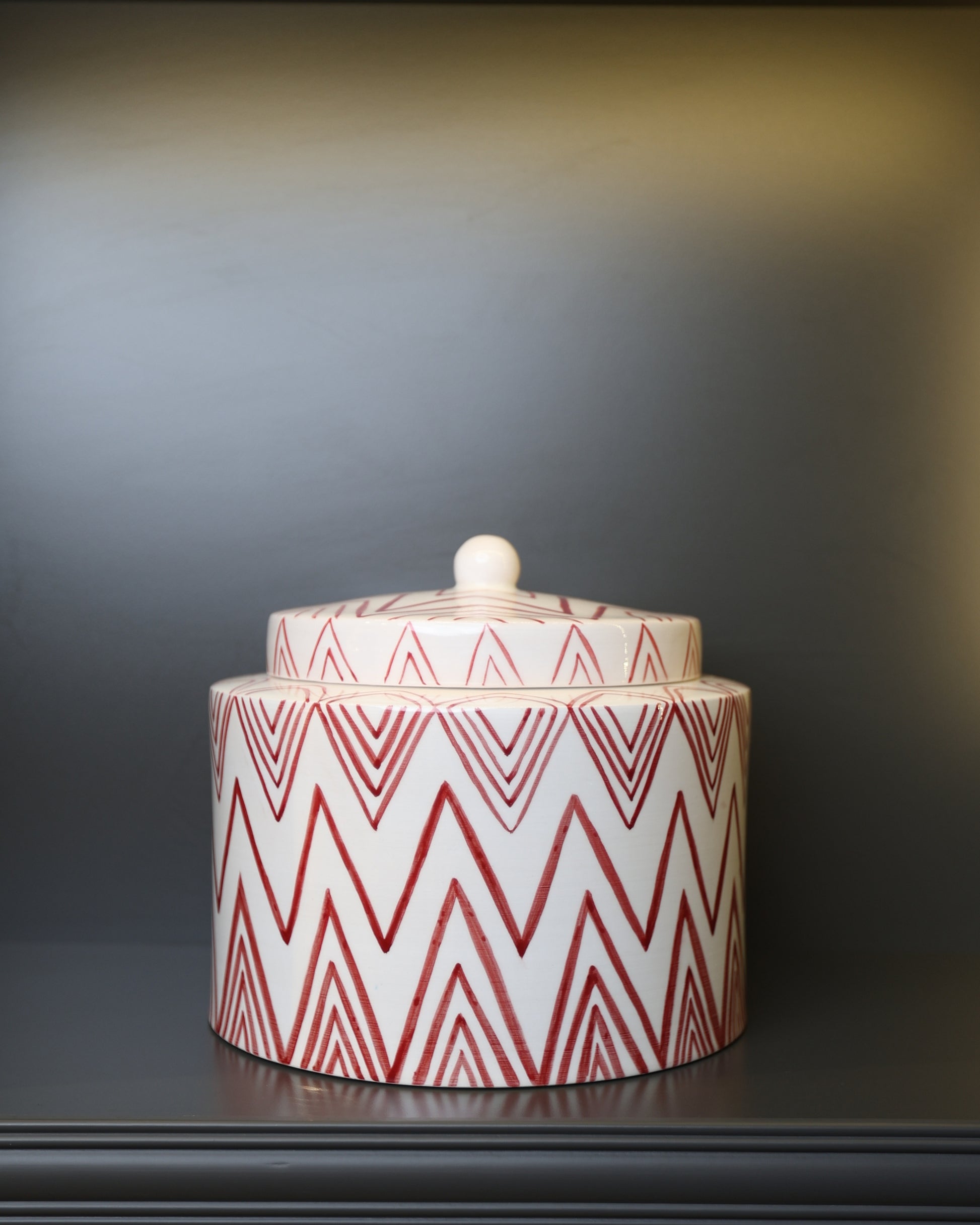 Kırmızı Geometrik Desenli Kapaklı Seramik Küp