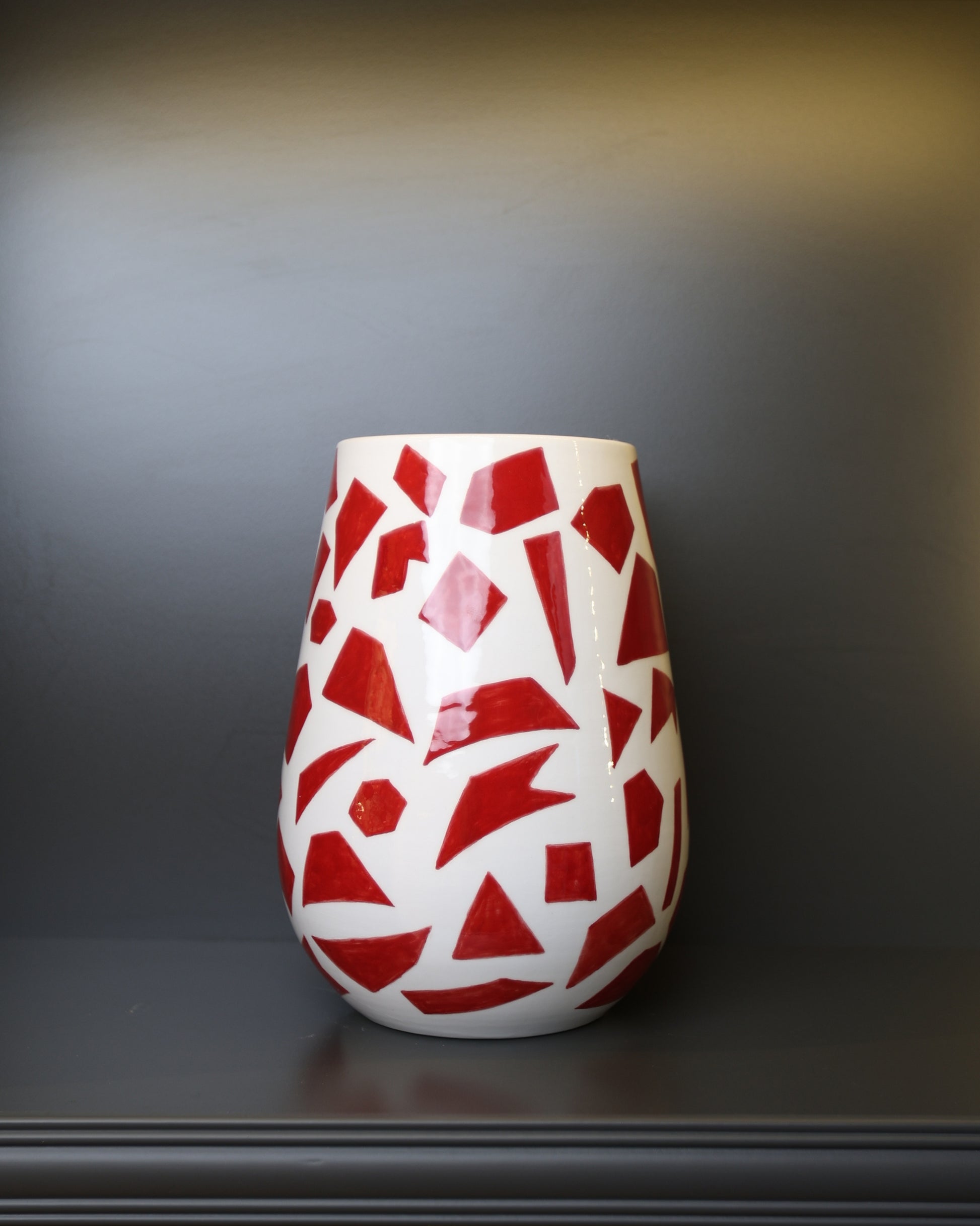 Kırmızı Geometrik Desenli Seramik Vazo