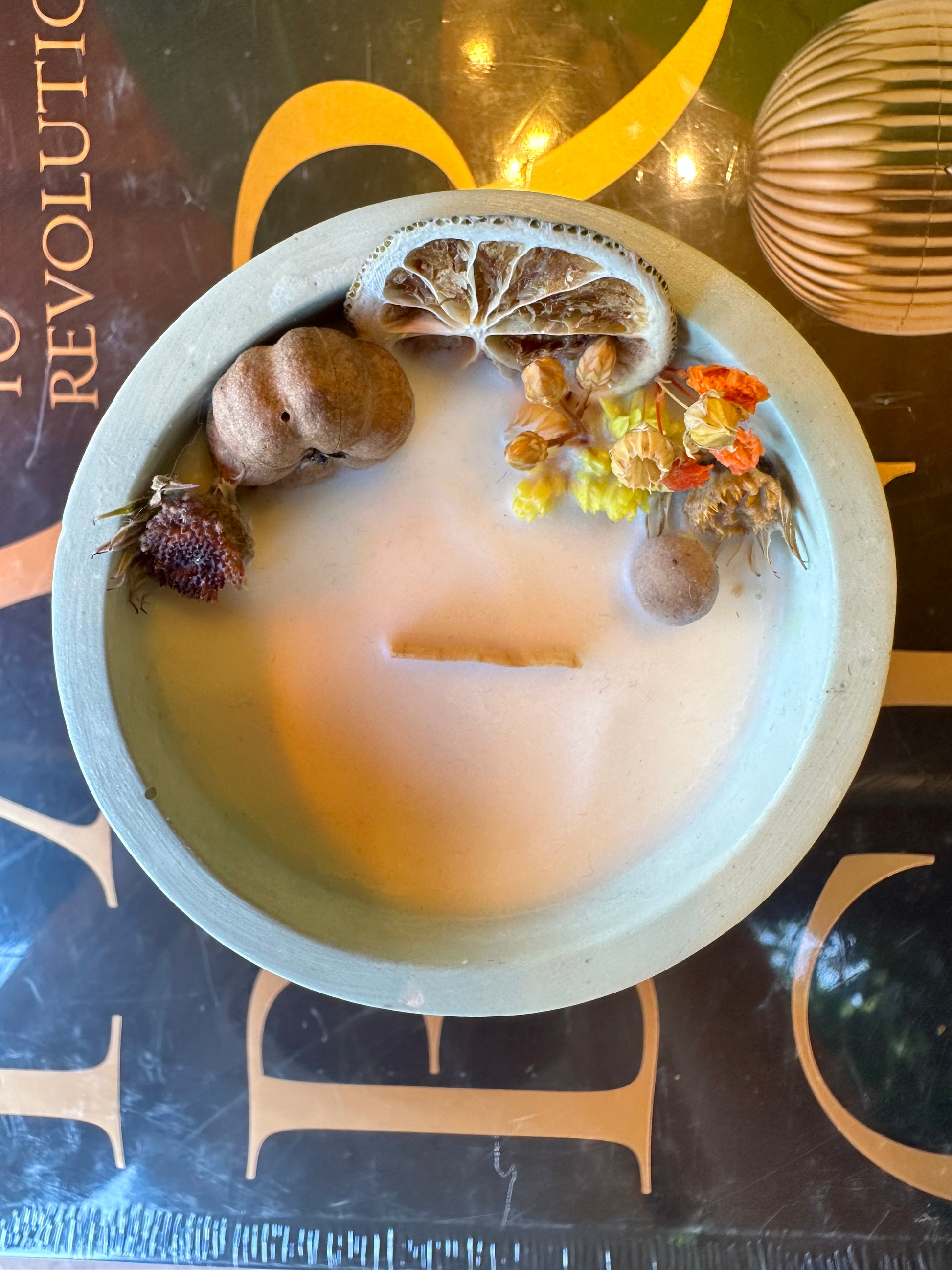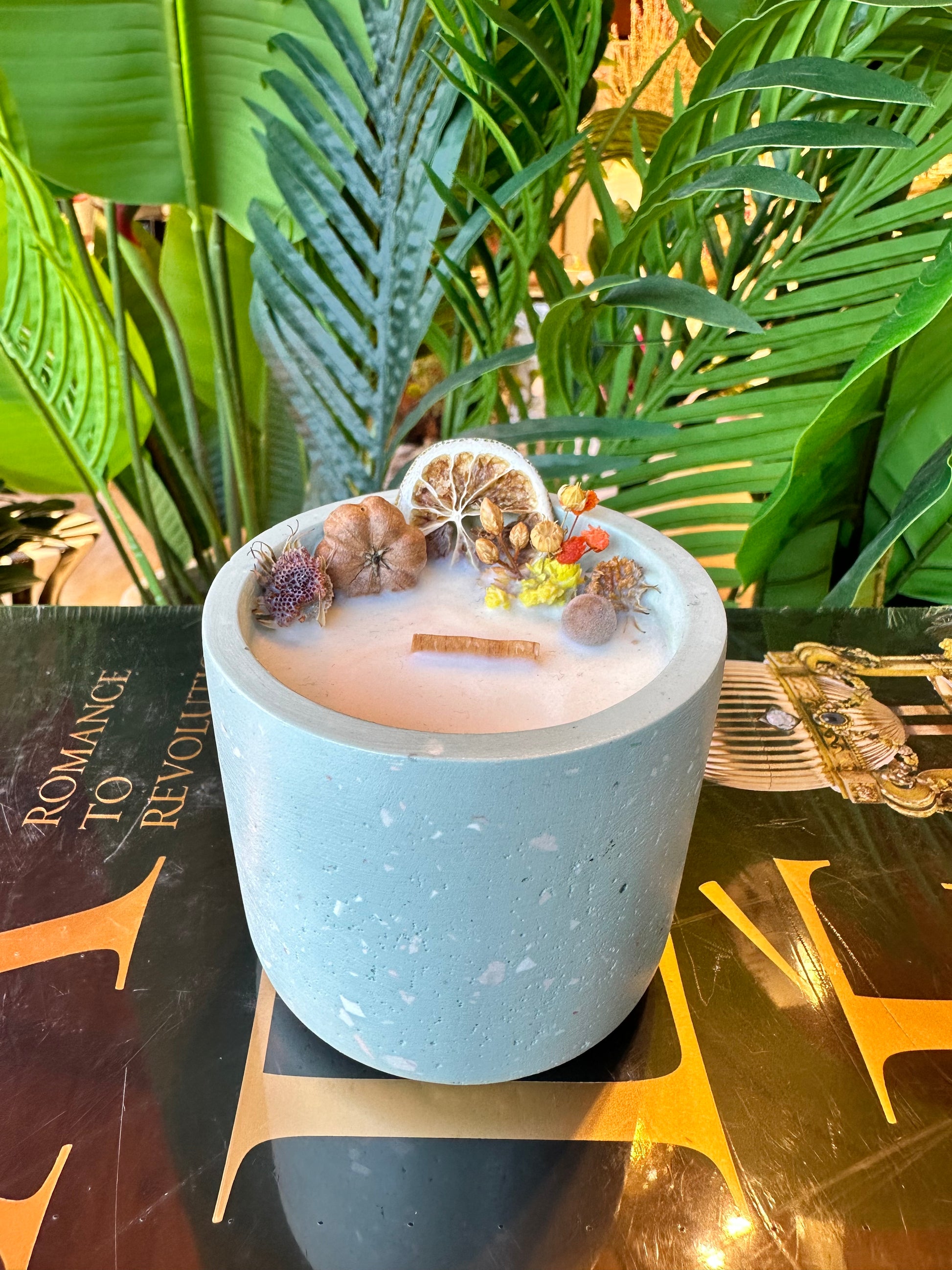 Küçük Boy Beton Mum – Beyaz Çiçekler & Vanilya