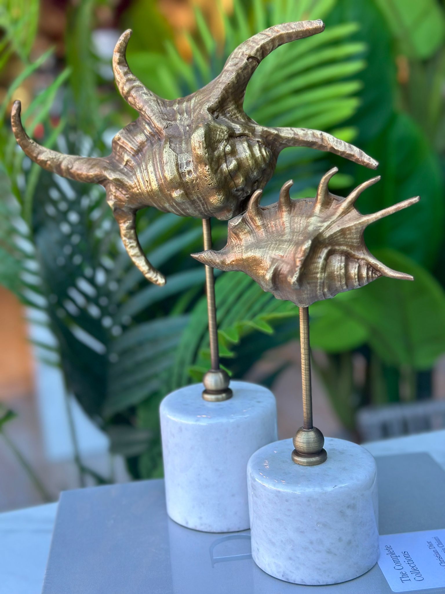 Deniz kabuklarının büyüleyici formundan esinlenen Mermer Kaideli Salyangoz Figür Seti, şık ve sofistike tasarımıyla dekorasyonunuza zarif bir dokunuş katar. Altın tonlarındaki salyangoz figürleri, beyaz mermer kaideler üzerinde modern bir dengeyle sergilenir.
