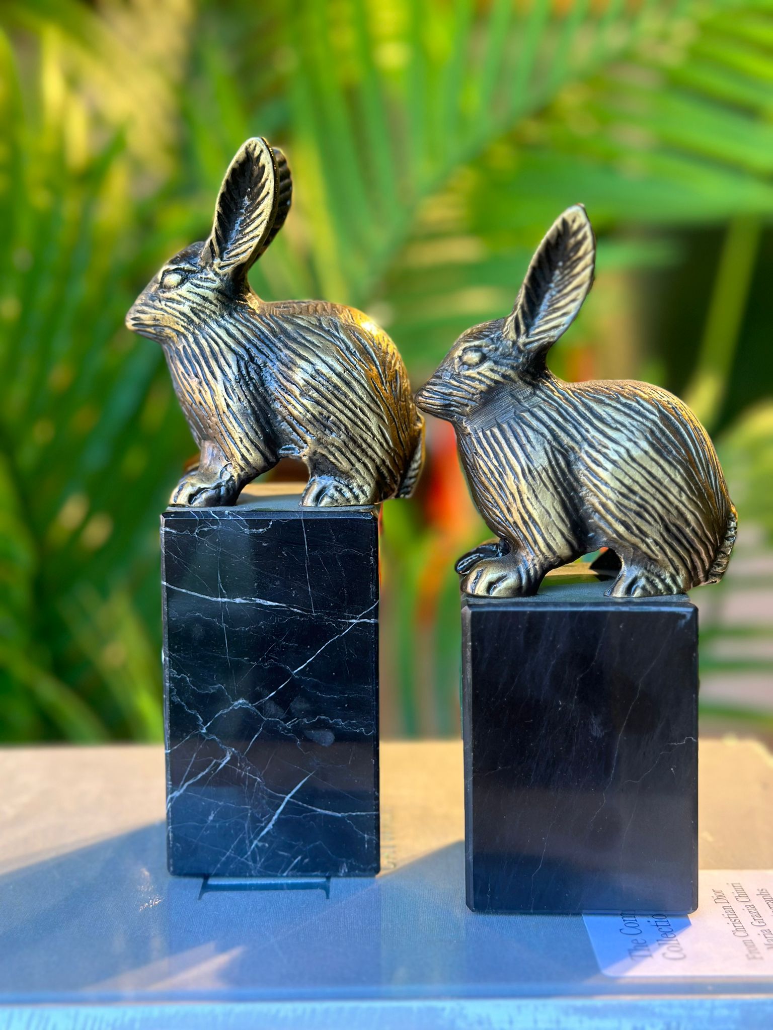 Doğadan ilham alan zarif tasarımıyla öne çıkan Mermer Kaideli Tavşan Figür Seti, yaşam alanlarınıza estetik bir şıklık katıyor. Siyah mermer kaide üzerine oturtulmuş altın eskitme detaylı tavşan figürleri, hem modern hem de klasik dekorasyonlarda uyumlu bir görünüm sunar.