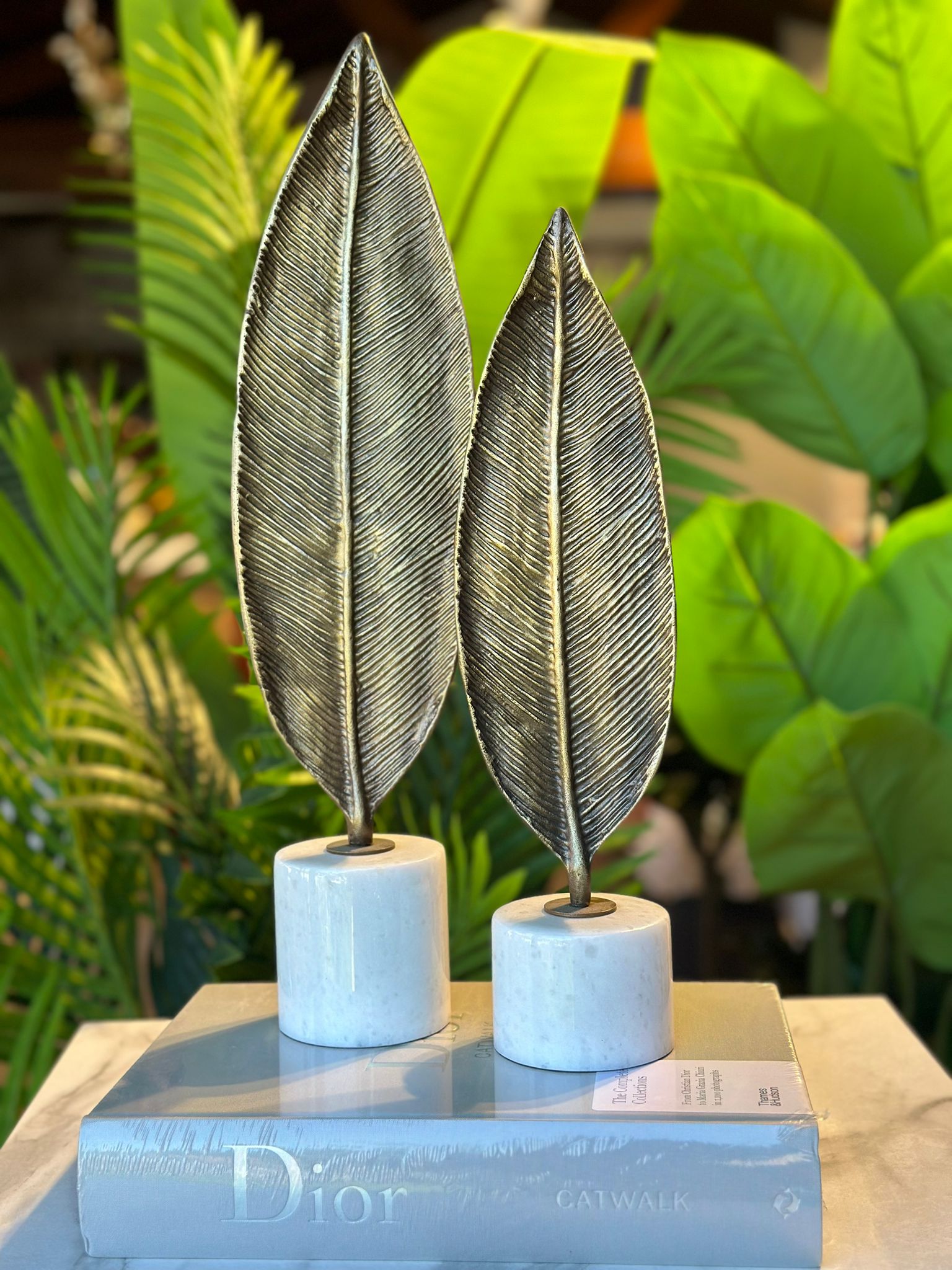 Doğadan ilham alan şık tasarımıyla öne çıkan Mermer Tabanlı Bronz Yaprak Figürlü Dekor, yaşam alanlarınıza modern ve zarif bir dokunuş katar. İnce detaylarla işlenmiş yaprak formu, bronzun sıcak ışıltısıyla birleşirken; beyaz mermer taban tasarıma güçlü bir duruş ve zamansız bir şıklık kazandırır.