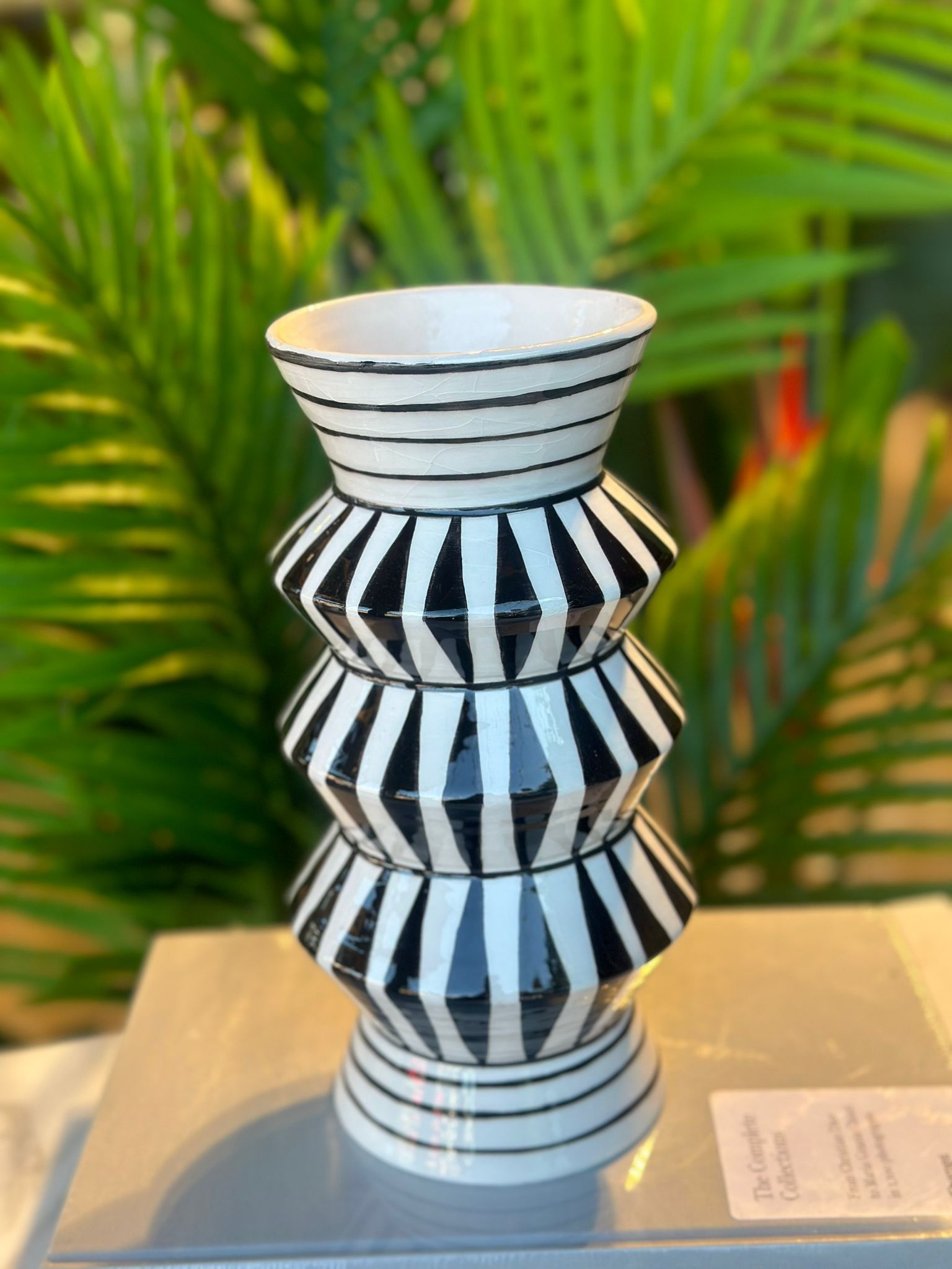 Siyah Beyaz Desenli Geometrik Seramik Vazo