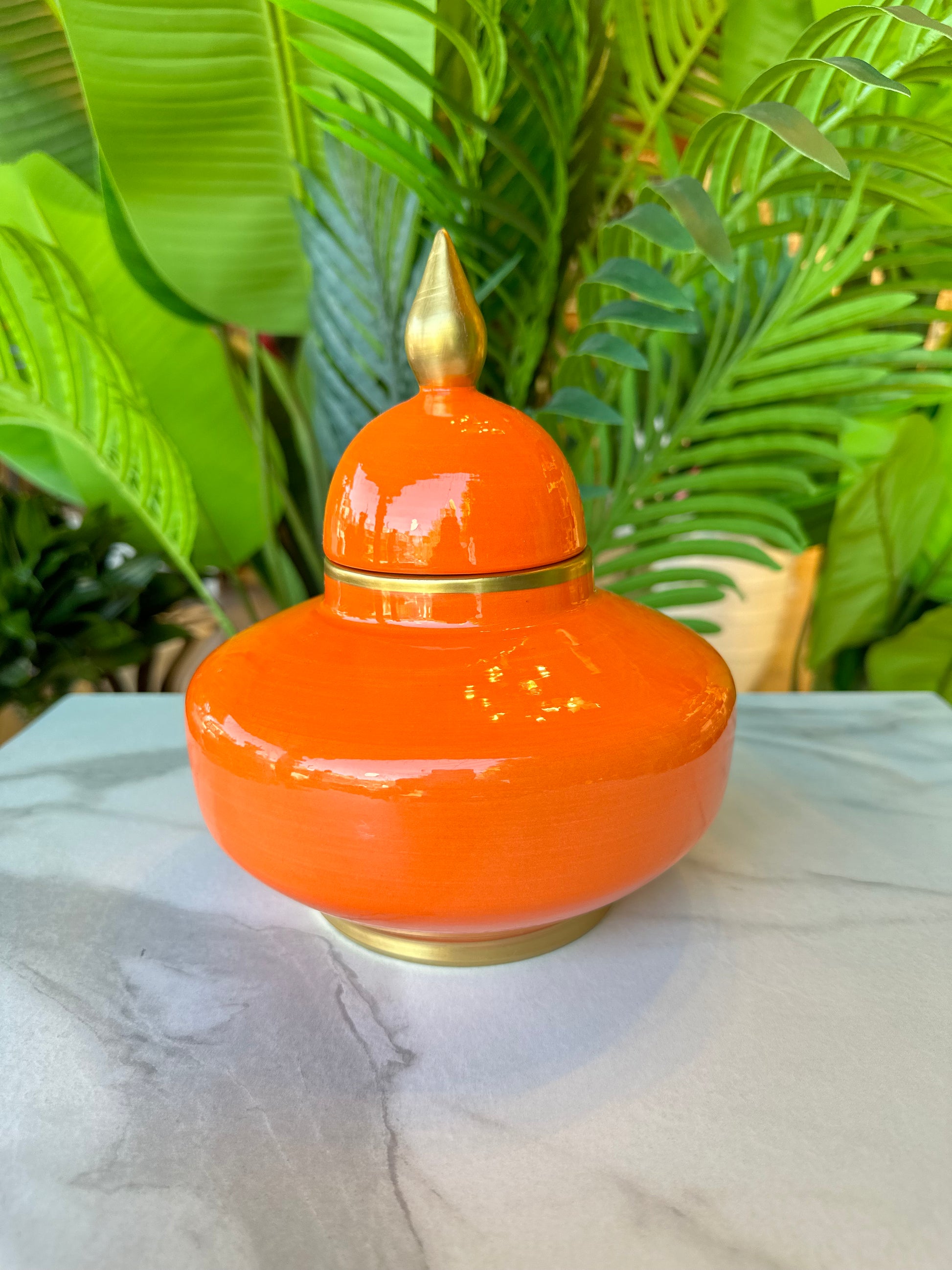 Modern ve dikkat çekici tasarımıyla öne çıkan Turuncu Uzay Küp, parlak turuncu rengi ve altın detaylarıyla bulunduğu mekâna enerjik bir hava katar. Yuvarlak hatlarıyla zarif bir form sunarken, üst kısmındaki altın detaylar lüks bir dokunuş ekler.